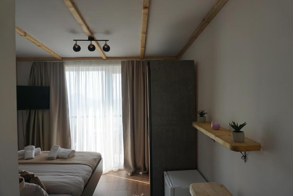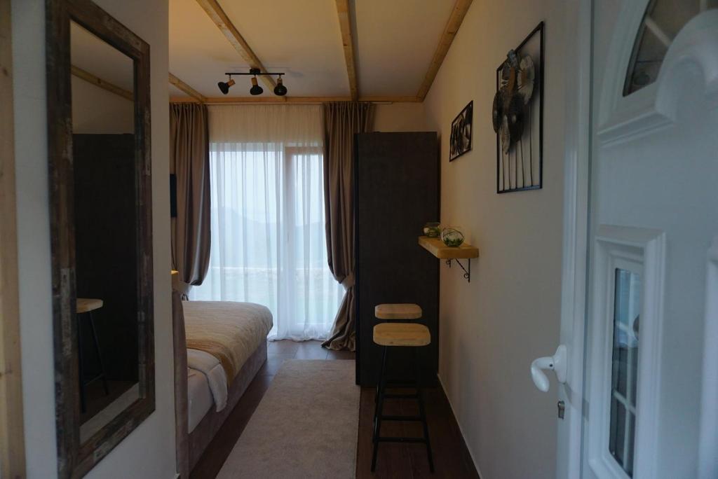 "The accommodation is located on the side of the mountain and the views that open directly from the bedroom are magical. The owners are a young, very nice family. We were very satisfied with our accommodation and would definitely recommend it to others."
